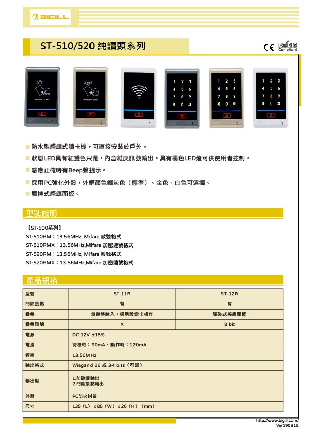 ◆ ST-510RM:無鍵盤,13.56 MHz,Mifare 散號格式。