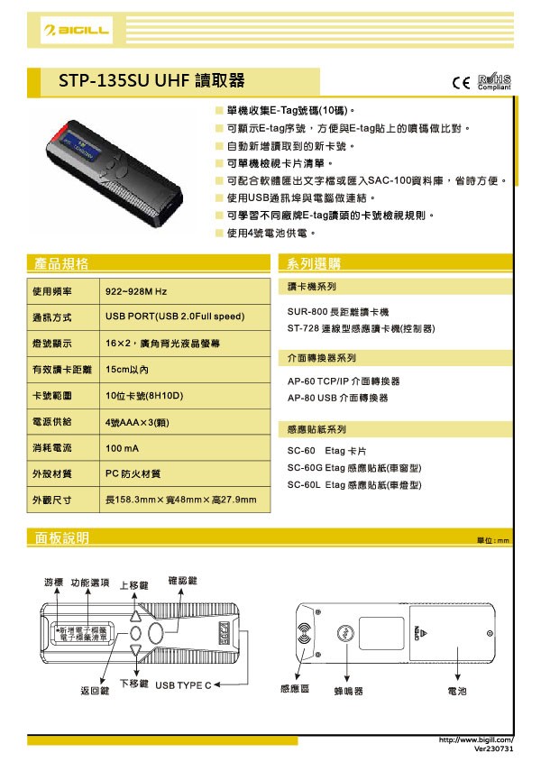純讀頭-STP-135SU UHF讀取器