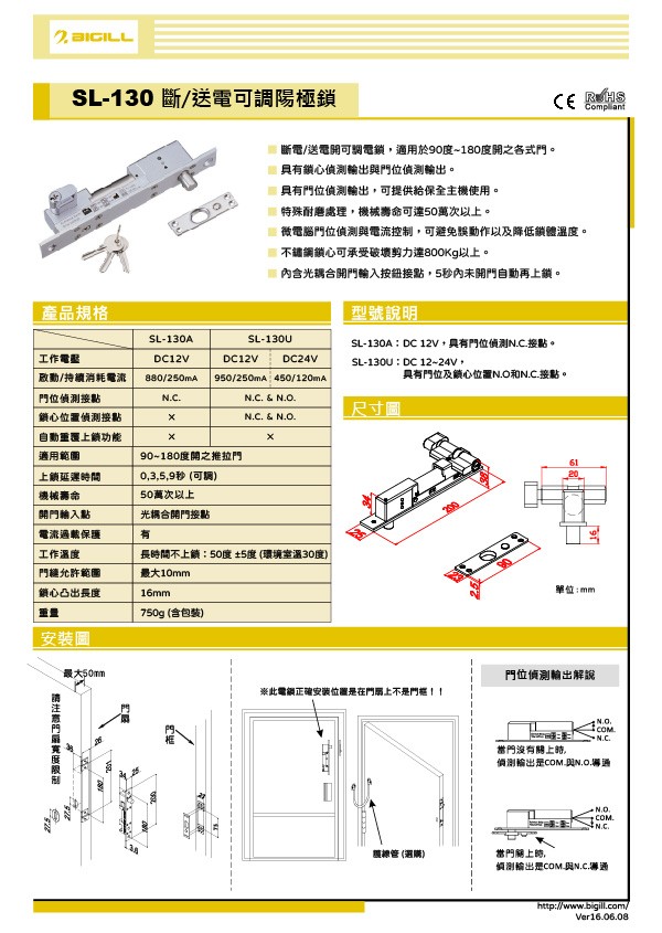-具有門位偵測與鎖心位置N.C.& N.O.輸出接點
